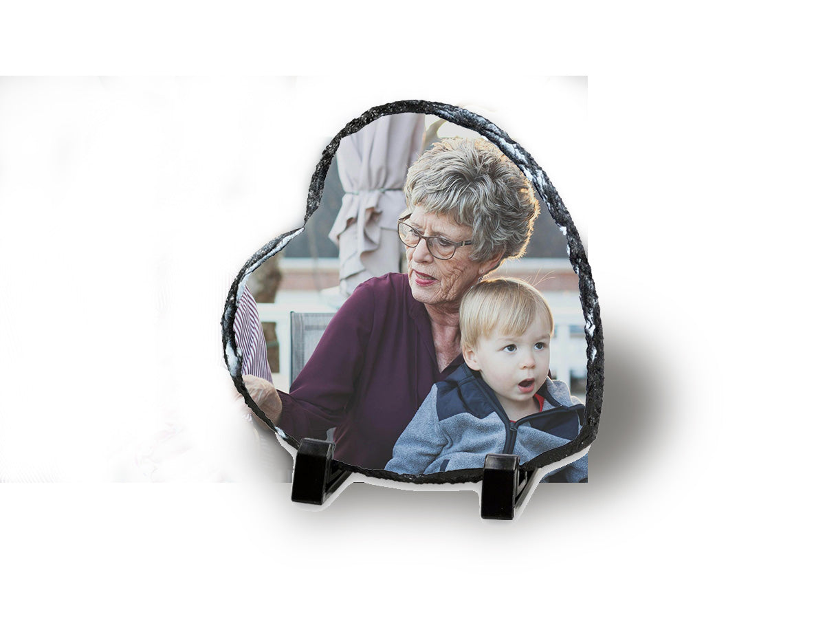 Placă ardezie din piatră naturală, dimensiune 145 x 145 mm ±3%, grosime 8 mm ±12%, suprafaţă super lucioasă cu dimensiunea de 135 x 135 mm ±3%, include doi suporţi pentru expunere pe birou.